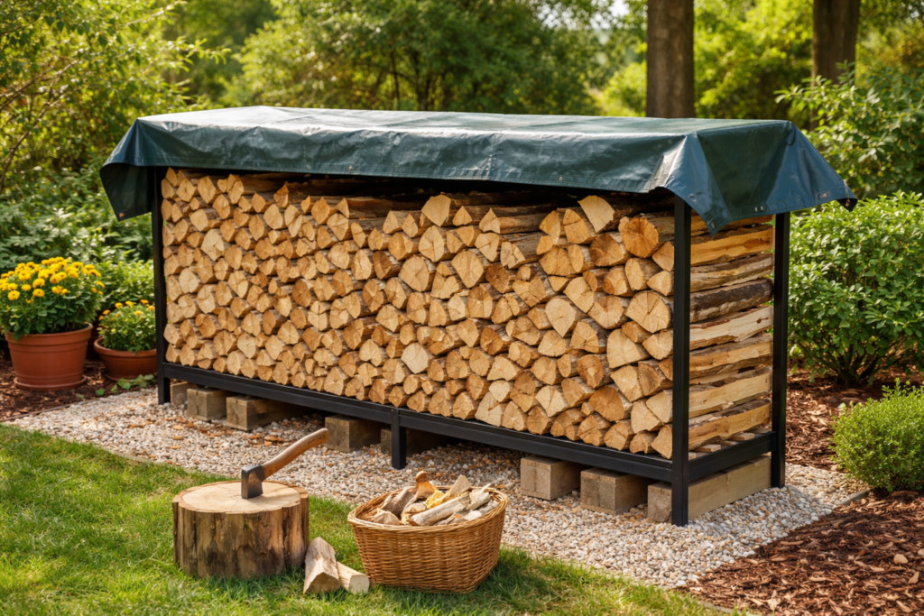 Firewood should always be stacked on a raised surface. Leaving logs directly on the ground exposes them to ground moisture, which encourages mold, decay, and pest attraction. Use purpose-built firewood racks, wooden pallets, or even cinder blocks to lift your stack several inches above the soil.